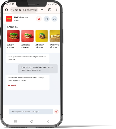 O Rango AI usa inteligência artificial para interpretar produtos, extras, observações e preferências, organizando tudo automaticamente e enviando o pedido pronto para a cozinha ou delivery.